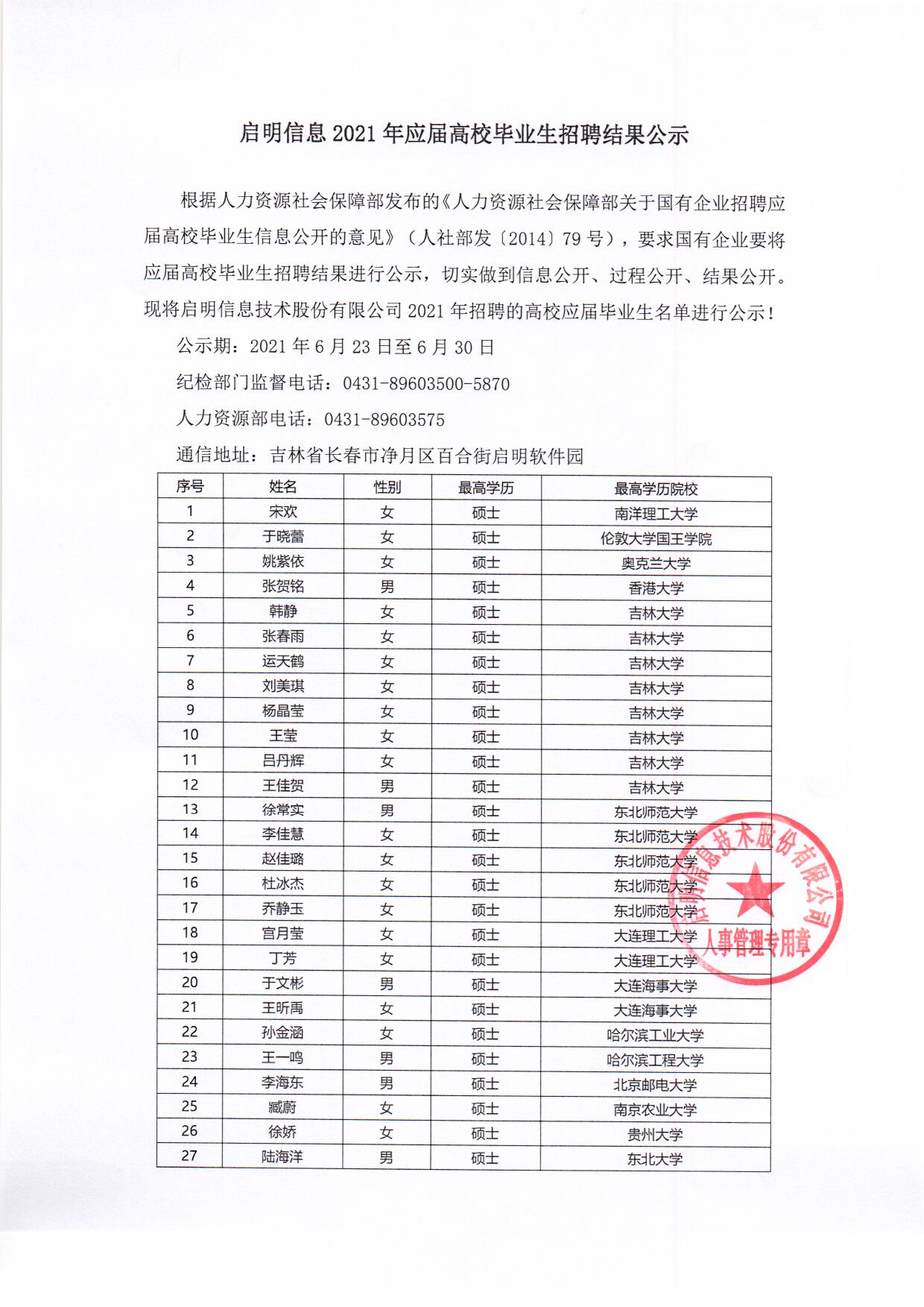 BBIN·宝盈信息2021年应届高校毕业生招聘结果公示